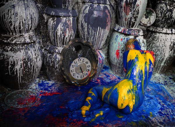 웅장한 벽화, 담쟁이덩굴, 낡은 골목과 계단, 폐허된 담장과 컬러플 대문 등을 소재로 고전적 스타일 누드배치로 폐가촌 영구히 기록 (연막쁌쁌 밀가루 폭탄 등 특수효과)