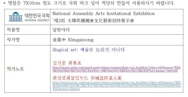 명찰은 7X10cm 정도 크기로 국회 마크 넣어 적당히 만들어 사용하시기 바랍니다.