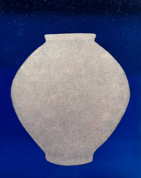 작가에게 달항아리는 달빛이다. 완벽하지 않은 균형, 미묘한 비대칭은 오히려 인간적인 온기를 품는다. 가까이 다가서면 미세한 흔적과 균열이 마치 피부처럼 살아 숨 쉬며, 시간과 기억의 감각을 불러낸다.