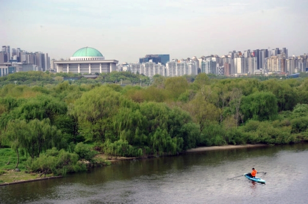 전시장은 넓고 쾌적, 도시형 화단 휴게실에서 다과 및 휴식 가능, 가족 나들이 적합, 특히 어린이들 국회방문 호연지기 앙양, 사진 마니아 국회 경내 및 지척인 서강대교에서 걸작 소재 지천....