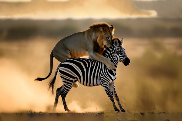 아프리카 들판에서 사자의 먹이감이 된 어룩말.