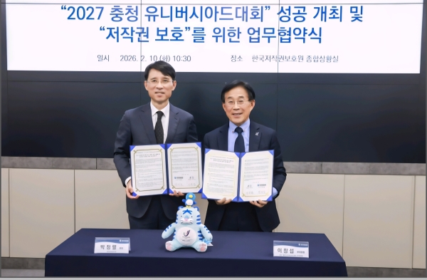 2027 충청 유니버시아드대회 조직위원회(위원장 강창희, 이하 조직위)는 10일 서울 상암동 한국저작권보호원(원장 박정렬, 이하 보호원)에서