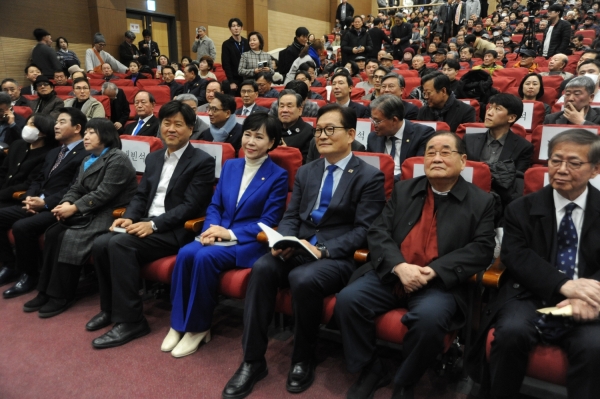 이 자리엔 이종찬 원로의원, 민주 송영길 전 대표를 비롯하여 김영배 서영교 의원 외 많은 동료의원 들과 수많은 지지들이 모여 북새통을 이루었다.