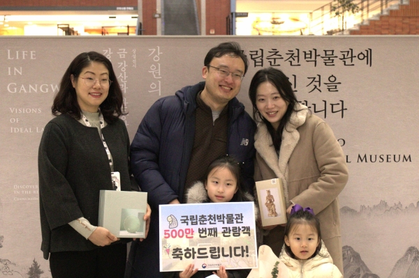 국립춘천박물관은 관람객 500만 명 돌파를 기념해 224() 920분경 500만 번째 관람객에게 이수경 관장이 직접 선물을 전달하는 축하 행사를 진행했다. 행운의 주인공은 서울 은평구 진관동에서 온 남영원 씨로 가족들과 함께 박물관을 찾았다가 행운의 주인공이 됐다. 남영원 씨는 오늘이 춘천 여행 2일 차로 평소 역사에 관심이 많아, 63살 딸들과함께 어린이박물관도 체험할 겸 국립춘천박물관을 찾았는데, 500만 번째 관람객이라는 행운을 얻어 기쁘다라고 소감을 밝혔다.