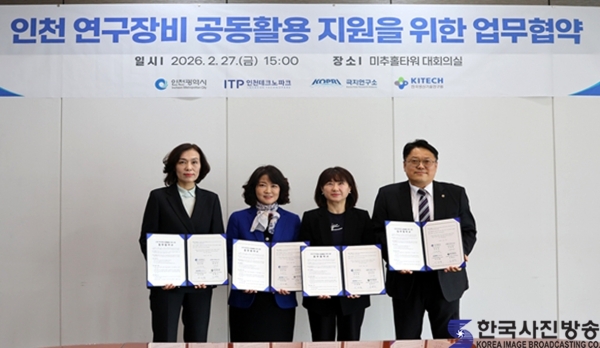 인천광역시는 지난 2월 27일 인천 미추홀타워 대회의실에서 인천테크노파크, 극지연구소, 한국생산기술연구원과 함께 「인천 연구장비 공동활용 지원사업」추진을 위한 업무협약(MOU)을 체결했다.