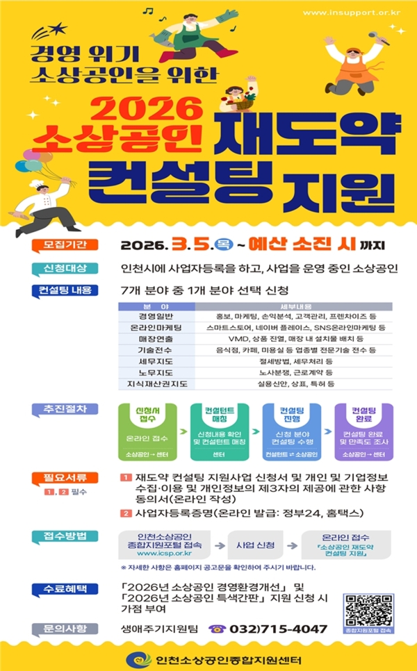 인천광역시는 오는 35일부터 인천지역 소상공인을 대상으로 경영위기 극복 및 영업 활성화를 위한 소상공인 재도약 컨설팅 지원사업을 본격 추진한다.