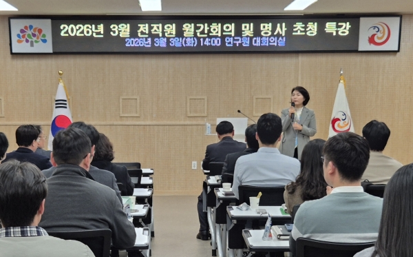 충남역사문화연구원은 전 직원 월간 회의 시에 명사 초청 특강을 지속적으로 운영하여 직원들의 정책 이해도와 직무 역량을 높이고, 기관 경쟁력 강화를 위한 교육을 이어가고 있다.