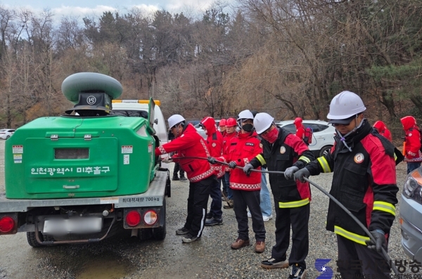 인천 미추홀구는 산림 재난 대응 역량 강화를 위해 연수구, 남동구, 중구와 함께 ‘4개 구 합동 산림 재난 대응단 교육 및 훈련’을 진행했다.