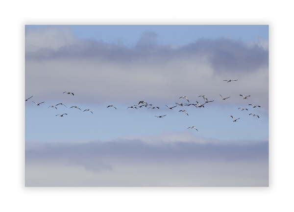 고향으로 가기 위해 수 천 마리의 두루미들이 넓은 논바닥에 모여
