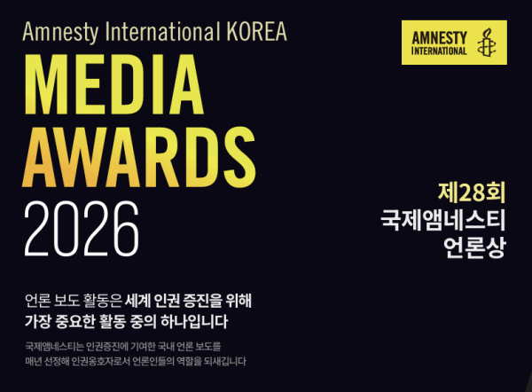 국제앰네스티 한국지부는 작년 한 해 한국 사회의 소외된 인권 문제를 심층 취재·보도해 인권의 가치와 의미를 확산하는 데 기여한 28회 국제앰네스티 언론상수상작을 오늘(11) 발표했다. 올해는 역대 최대인 120여 건의 작품이 공모됐다.