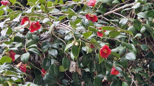 내려오는 길 곳곳에는 동백꽃과 함께 벌써 야생화들이 활짝 피어 있다. 사진을 찍어 구글 제미나이에게 물어보니 ‘광대나물’이라고 답해준다. 줄기 위 부분에 달린 잎이 줄기를 완전히 감싸고 있는데, 그 모양이 마치 광대가 목에 두른 장식처럼 보인다고 해서 붙여진 이름이라 한다. 잎의 모양 때문에 '코딱지나물'이라는 별칭도 가지고 있다.