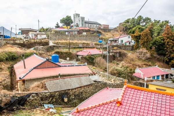바다가 내려다보이는 비탈언덕에 형형색색으로 들어선 예쁜 주택들. 절대 과장이 아니다. 비록 규모는 작지만 그리스 산토리니섬 못지않은 아름다운 섬마을이다. 그 마을 언덕 꼭대기에는 하얀 색의 교회가 우뚝 서 있다. ‘언덕 위 하얀 교회’ 멋지고 성스럽다.