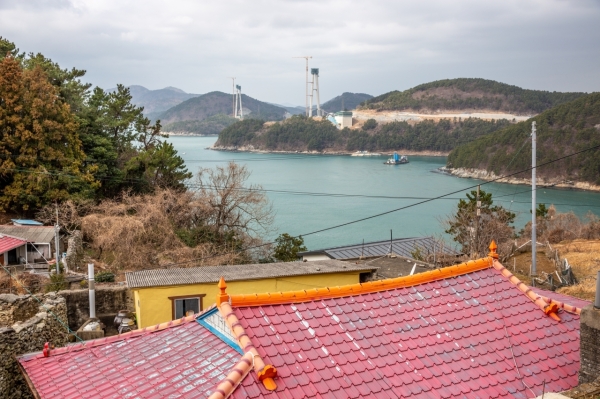 바다 건너 다리공사중 인 주탑 2개가 보인다. 월호도와 개도를 잇는 교량공사다. 여수시가 2026세계섬박람회를 앞두고 11개 주요 섬을 잇는 다리 건설에 속도를 내고 있다. 여수시는 이를 '일레븐 브릿지'로 명명하고 바다와 섬, 관광객과 주민을 잇겠다는 계획으로 11개 다리 가운데 일부는 섬박람회 이전까지 임시개통도 준비 중이라고 한다.