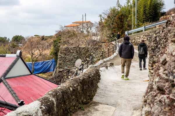 동백나무꽃을 보면서 역시 남녘 섬이구나 실감이 간다. 가파른 숲길로 봉통마을에 들어올 때 김재연 선장에게 물어본게 또 있다. “길이 매우 좁고 가파른데 겨울에 눈이 오면 차 운전하기 위험할 것 같네요”. “괜찮아요. 이곳엔 눈이 거의 안와요. 눈이 와도 바로 녹아버려요”. 대답이 명쾌하고 편안하다.