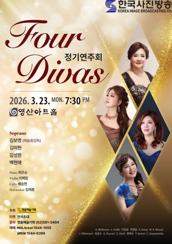 2026년 3월 23일 창립 정기연주회 개최 소프라노 앙상블 Four Divas 네 디바가 펼치는 감동의 클래식의 향연… 창립 무대 기대감 고조