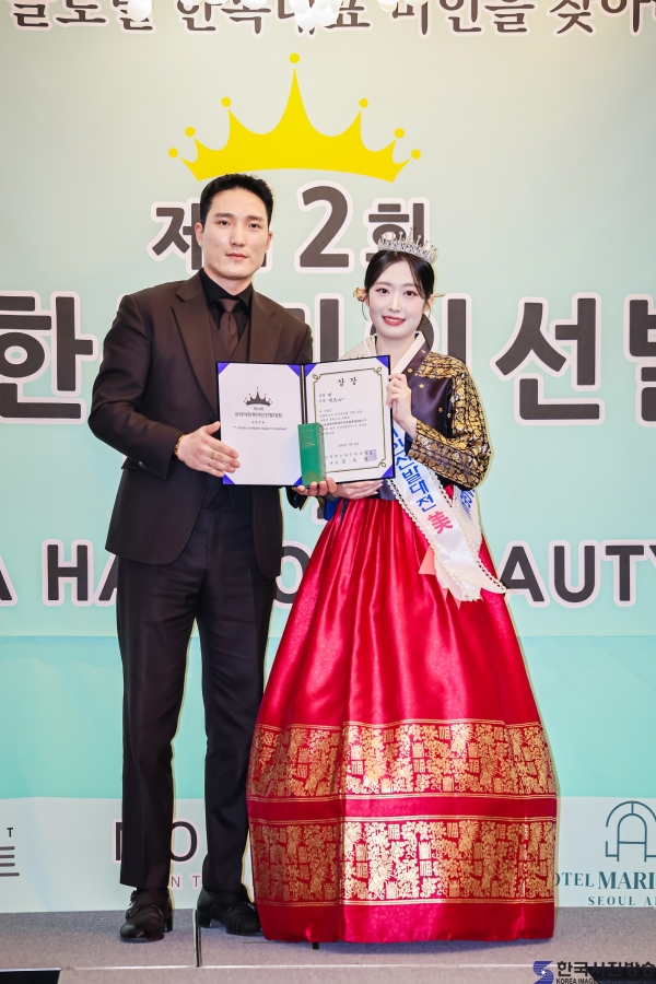 호텔마리나베이코리아 영업본부 한진현 과장과  ‘코리아한복미인선발대전 2026’ 미 권가린/ 이한철 기자