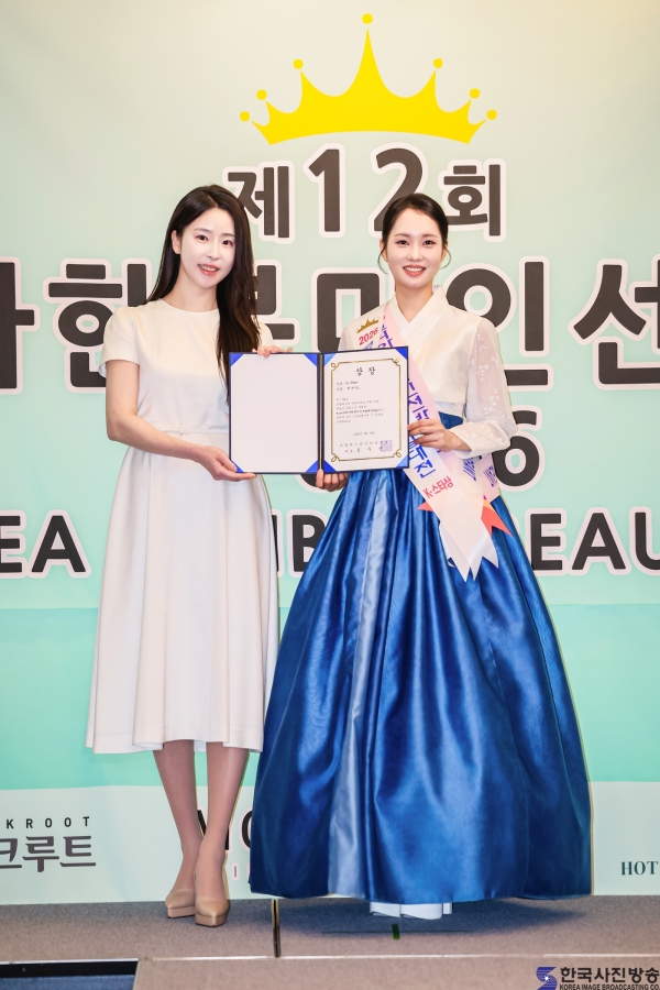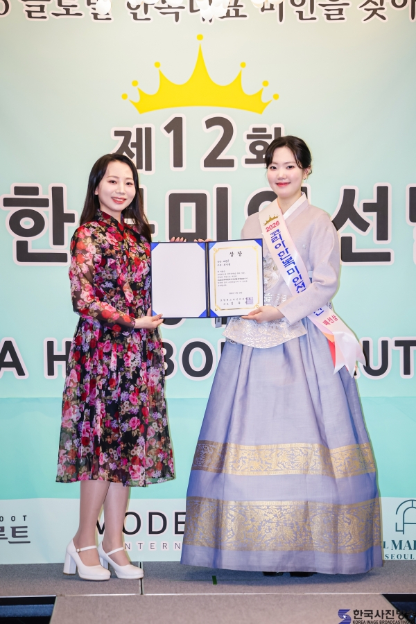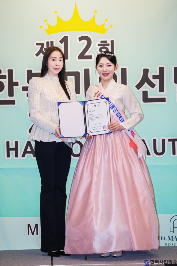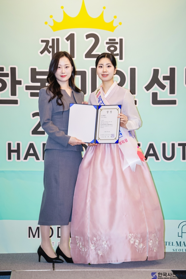 2025 코리아한복미인선발대전 선 오경은과 ‘코리아한복미인선발대전 2026’ 패션상 김민경/ 이한철 기자