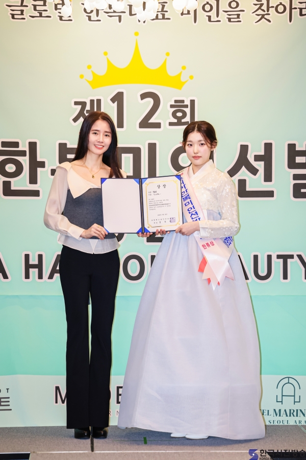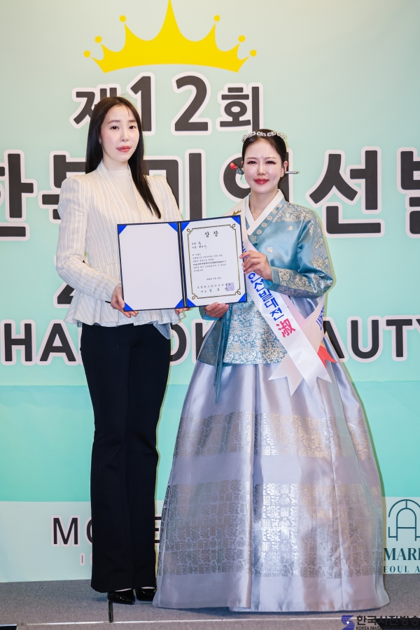 2025 미스한복선발대회 진 위귀리와 ‘코리아한복미인선발대전 2026’ 뷰티상 김단아/ 이한철 기자