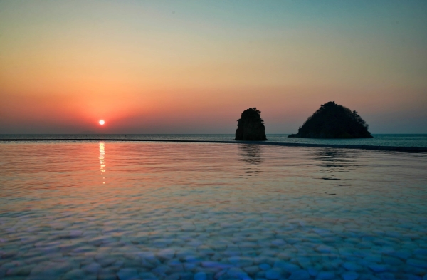 석양빛에 물든 하늘 여심 따라 붉어지네