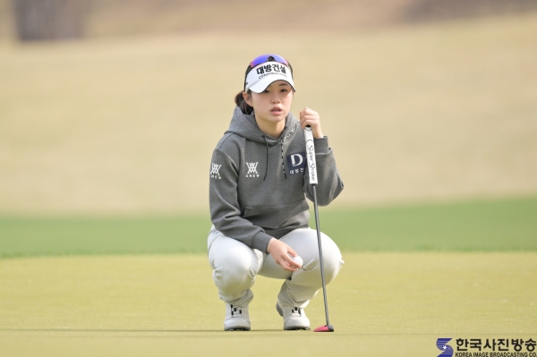 [로토] 임진영...그린에서 퍼팅 라인을 체크한다.