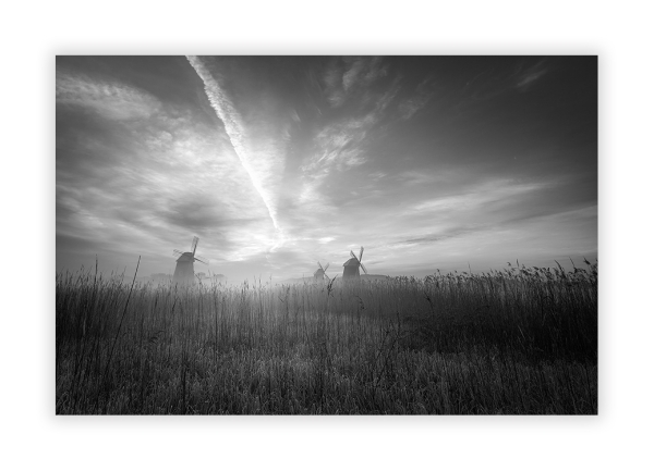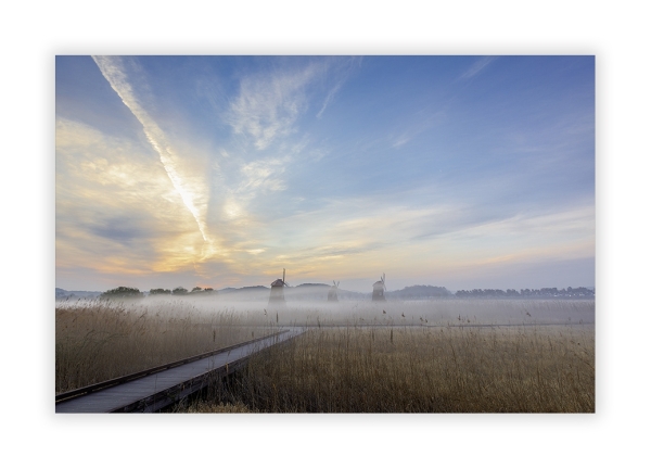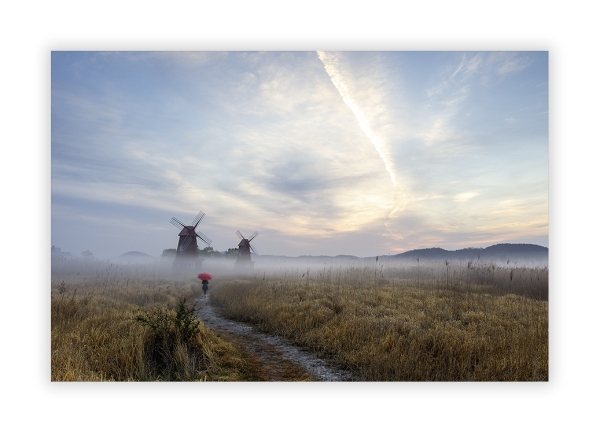 공원의 상징인 풍차사이로 물안개가 휘어감고 있는