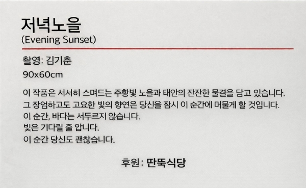 작품이 없는 경우: 꽃지해변 작품 이미지 무료 제공 → 전시용 액자 제작 후 참여 (전시 후 본인 매장/가정에 소장 가능)