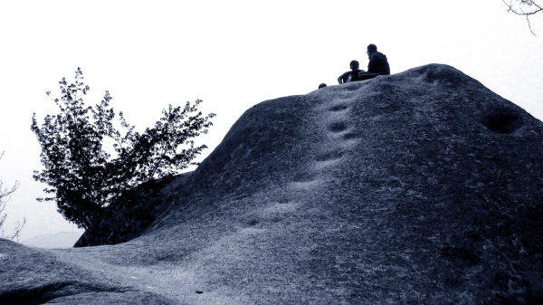 가슴을 배 위를 그리고 황산의 깊디깊은 협곡을 잠식하듯 천천히 흘러내리는 하얀 운해, 그리고 파란 하늘! 가랑잎 굴러가는 소리라도 들릴 듯 조용한 사위에 천둥처럼 울리는 소리 뚝! 그리고 또 뚝! 방울 바울 떨어지는 페인트 소리, 그리고 스스로 흐르며 그려내는 신묘한 형상!