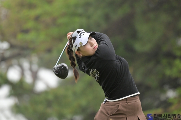 김희지 프로가 1번 홀에서 강한 드라이브 샷을 보내고 있다.