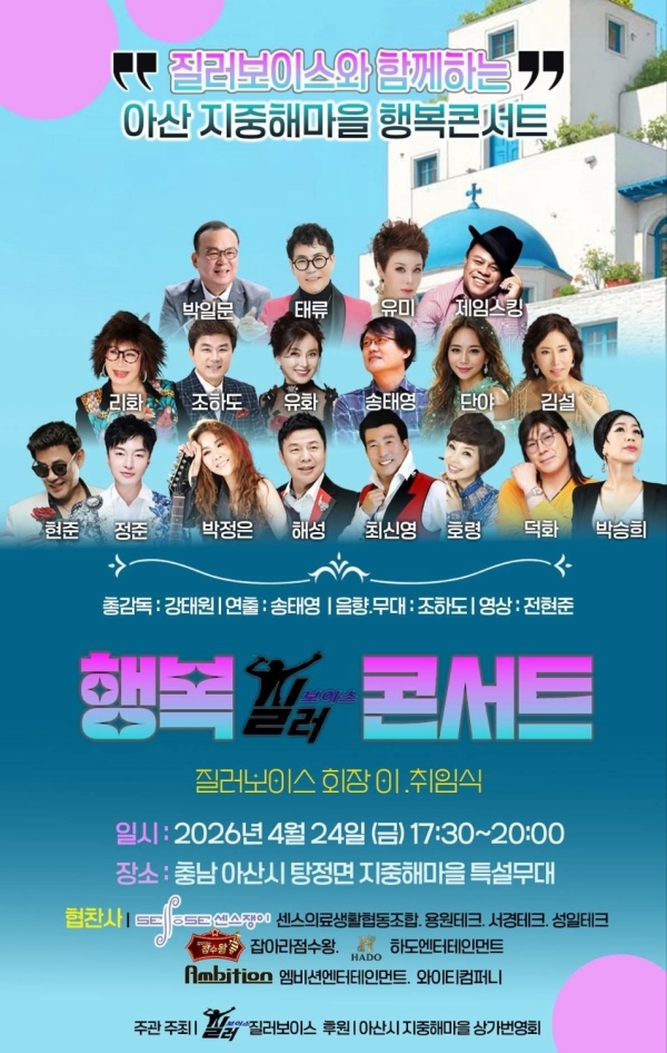 오는 4월 24일 금요일 오후 5시 30분, 충남 아산시 탕정면 지중해마을 특설무대에서 펼쳐지는 이번 행사는 '질러보이스와 함께하는 아산 지중해마을 행복 콘서트'라는 타이틀로 관객들을 찾아간다.