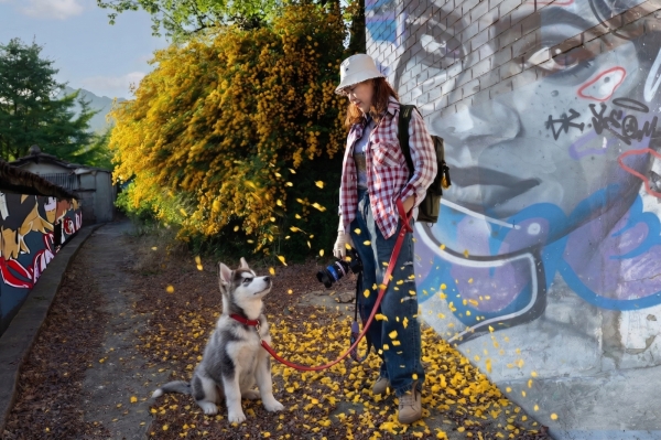 알레스칸 허스키와 견주의 동행,