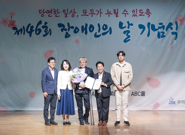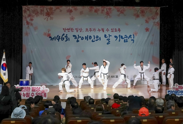 ▲ 제46회 장애인의 날 기념식에서 참가자들이 단체 기념촬영을 하고 있는 모습