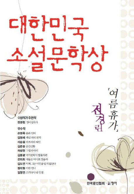 소개 제1회 대한민국 소설문학상 수상작『여름휴가』. 한국소설의 새로운 지평을 열어가는 대한민국 소설문학상 수상작품집 한국문인협회의 매년 11월부터 익년 10월까지 정상적으로 원고료를 지불하는 국내 문예지에 발표한 단편소설과 창작집을 대상으로 심사하여 수상한 작품들을 모았다. 마지막까지 각축을 버린 작품은 세태에 대한 관찰과 예리한 묘사를 보여 준 하성란의 <그림자 아이>와 전경린의 <여름휴가>였다. 이 중 세계관이 외향적으로 작용하는 역동성을 지녔으며 동시에 이야기의 서사성을 보다 잘 운용하고 있는 전경린이 수상작가로 선정되었다. 전경린의 작품 2편 외 우수작으로 선정된 10편의 단편을 만나볼 수 있다.