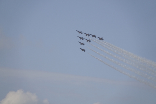 에어쇼의 굉음에 감탄을 쏟아냈다.