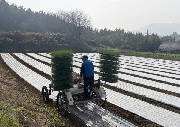 -‘양파 기계 정식 현장 시연회’ 통해 승용형 이식기 활용 정식 작업 선보여-
