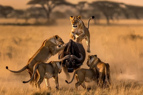 그리고 버팔로의 등에 올라타고 야생의 본능을 드러낸다.