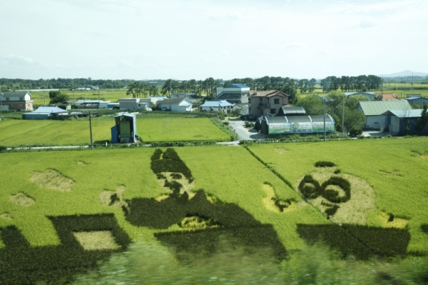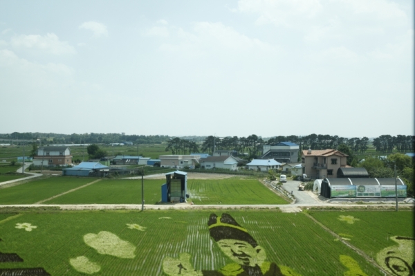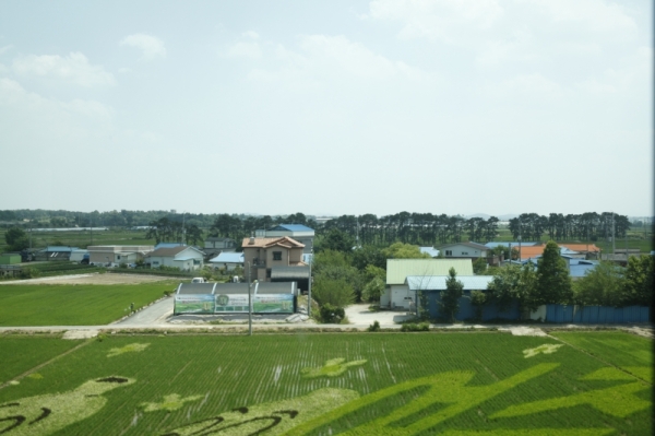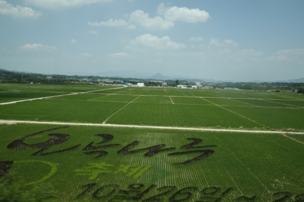 여주시는 경기도 동남부에 있는 시다. 시의 중심으로 남한강이 흐르며 벼농사등 농업이 발달된 도시다. 전철을 타고 밖을 보니 논 위에 그림이 그려져 있었다. 아마 이것이 Agriculture Art 인가 보다. 빠르게 달리는 전철안에서 작업을 하다 보니 흔들림이 있었다. 그렇지만 보기 힘든 작품이어서 올린다