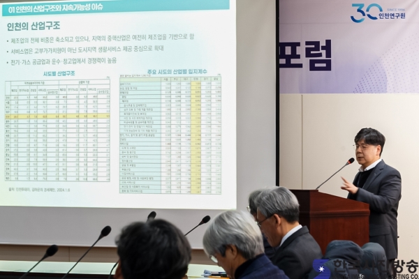 1차 포럼의 주제는 인천시 산업 전환과 에너지 전망으로, 인천 경제의 산업 구조 변화와 에너지 정책 환경을 중심으로 논의가 진행됐다. 이날 주제발표는 인천광역시 이남주 미래산업국장이 인천시 AI와 에너지 전망을 발표하고, 인천연구원 윤석진 경제산업연구부 연구위원이 인천시 에너지산업 현황과 전망을 발표했다.