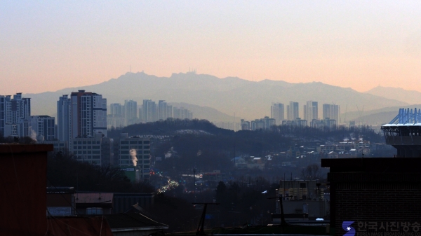 ▼ 관악산과 출근하는 차량들