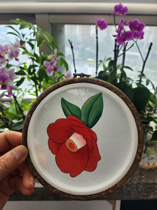 노방 위에 동백 한 송이를 올려본다.
