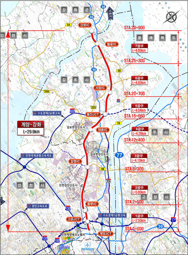 장철배 시 교통국장은 “계양~강화 고속도로 건설은 인천 북부권의 교통 여건을 개선하고 지역 간 이동 시간을 단축하는 것은 물론 물류 효율성 향상과 지역경제 활성화에도 크게 기여할 것으로 기대된다”라며 “사업이 차질 없이 추진될 수 있도록 관계기관과 긴밀히 협력해 나가겠다”라고 밝혔다.