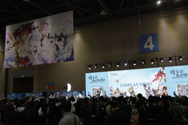 무대에서는 인기 일러스트 작가 ‘레바’가 관객과 소통하며 ‘아주르 프로밀리아’ 캐릭터를 즉석에서 그려내는 라이브 드로잉쇼를 선보이고, 이어지는 사인회를 통해 팬들과 교감하는 특별한 시간을 갖는다. 이와 함께, ‘아주르 프로밀리아’ 속 주요 캐릭터들을 생동감 있게 재현한 전문 코스플레이어 5인이 각 캐릭터 특유의 개성과 매력을 살린 화려한 퍼포먼스로 현장의 시선을 사로잡을 예정이다. 나아가, 공식 코스플레이어와 직접 마주해 즉석 사진을 찍고 자신만의 탑로더를 함께 꾸미는 1대1 이벤트는 현장을 찾은 팬들에게 ‘아주르 프로밀리아’와 함께하는 잊지 못할 추억을 선물한다.