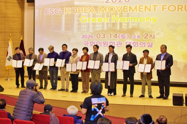 이번 포럼은 2026년 3월 14일 오후 2시, 국회의원회관 대회의실에서 개최되었으며, ESG 경영 확산과 지속가능한 사회 구축을 위한 다양한 논의와 교류의 장으로 마련됐다.