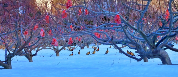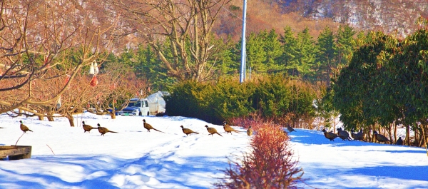 눈 덮인 들판 위 "꿩들의 행진" ...... 자연이 연출한 보기드문 장면 ,