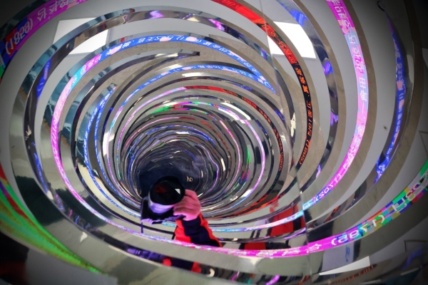 끝없이 이어지는 빛의 원형 속 에서