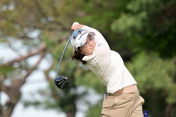 유서연2 프로가 1번 홀에서 대회 마지막날 경기를 시작하고 있다.