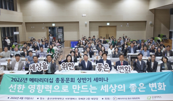 굿네이버스 울산지부와 메타리더십 울산 총동문회는 415(), 울산과학대학교 서부캠퍼스 국제관 2층 대강당에서 굿네이버스와 메타리더십 울산 총동문회가 함께하는‘2026년 메타리더십 총동문회 상반기 세미나를 개최했다.
