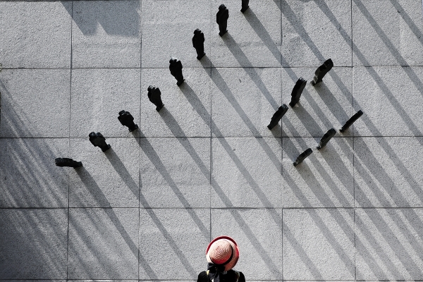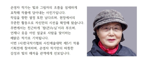 사진 하단의 붉은 모자가 주는“가벼움과 화사함”이 상단에서 쏟아져 내려오는 그림자의 무게와 팽팽한 긴장감을 유지하게 한다.